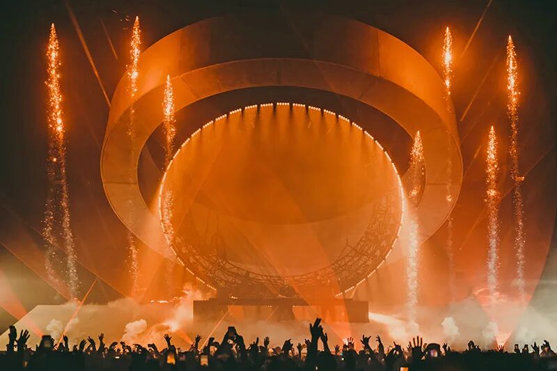 整个巡演最让人瞩目的是头顶的混凝土环,创造了戏剧性的存在感。该设计于今年早些时候在 2022 年 Coachella Valley 音乐艺术节上首次亮相,然后进行了修改并增加了自动化功能。