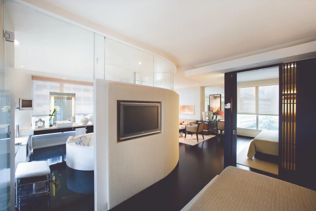 作为地产巨头「森大厦」Mori Building的史诗级综合体六本木之丘的组成部分,东京君悦开创了一项改变酒店客房形态的“浴室革命”,将坐浴和淋浴并入同一玻璃隔间,让浴室盥洗区成为介于居室和沐浴区间的第三空间。