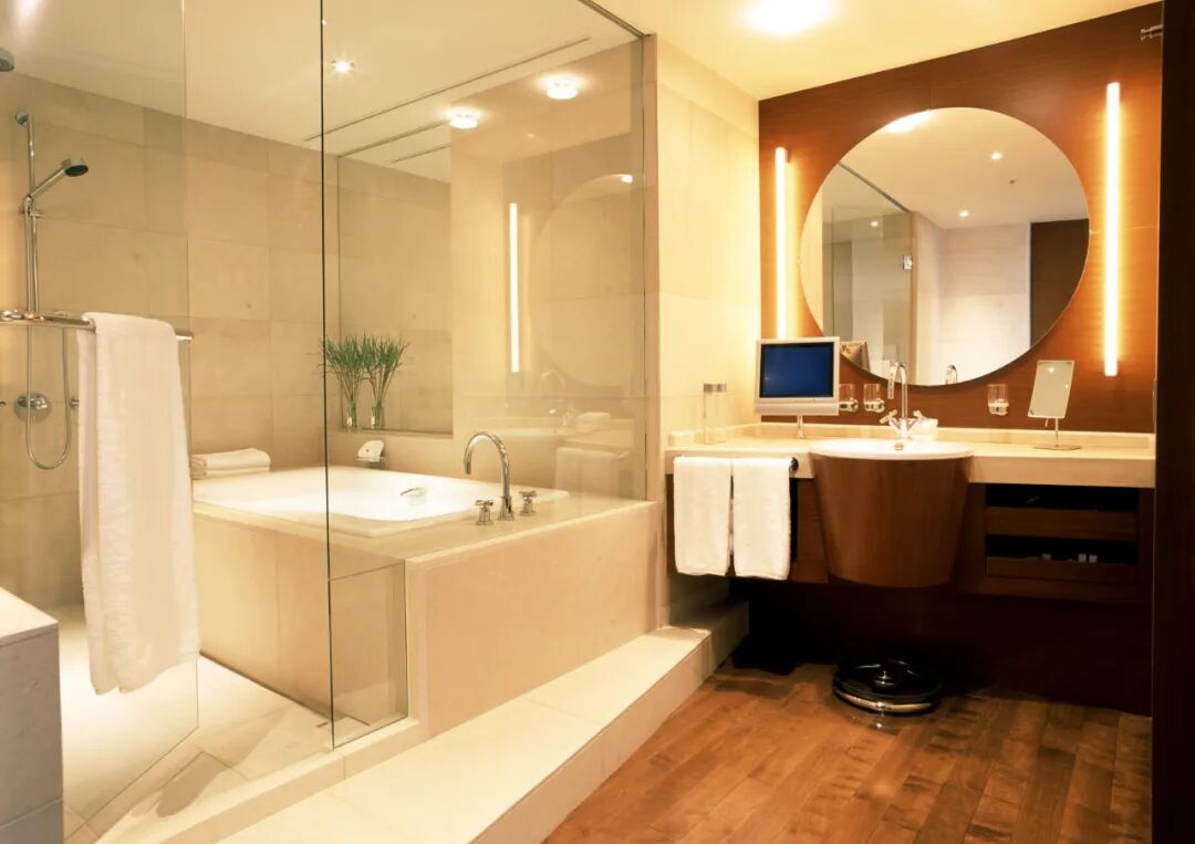 1. 把淋浴和坐浴合并在同一玻璃隔间,顺应日本对沐浴的重视