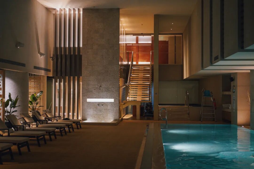 尤其马克部分套房的秘径式书房(也是连通房的衔接密道)、行政酒廊里装备Bulthaup橱柜的开放式厨房+餐厅,绝没在空谈私邸氛围。SPA场景极具突破性。