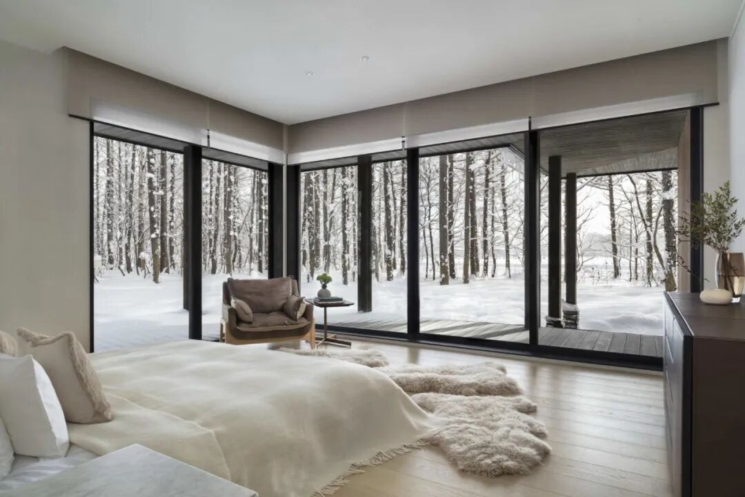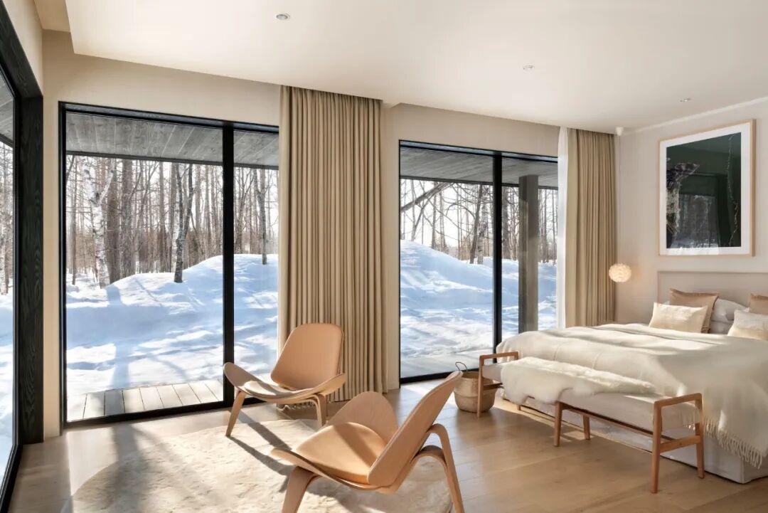19栋双拼树屋别墅将沿主馆两翼排布,每间客舍都坐拥羊蹄山及周围群山构成的美景。贯穿室内外的温泉设施、图书馆和丰富的餐饮据点,都将为这座冬日度假胜境增色。