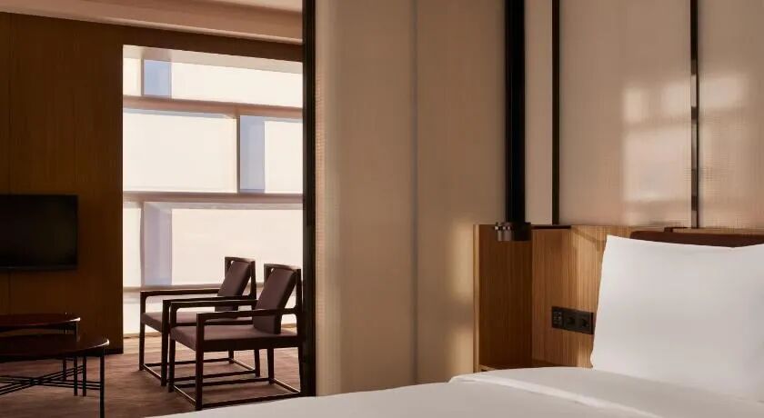 据说西安丽思的业主被京都丽思征服后,点名要Peter Remedios操刀西安“狮府”。前卫雍容的底部进厅、庭院深深的客房层走廊、贯穿室内外的行政酒廊,都让人对古都和丽思有了焕新的认知。