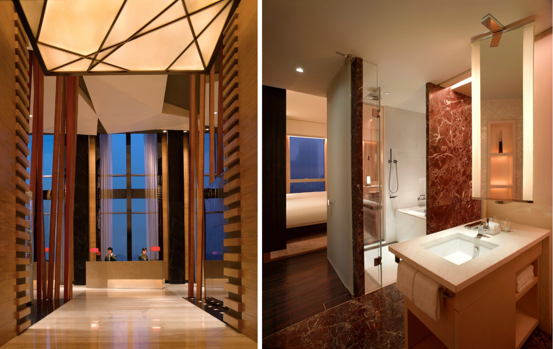 富力当年在广州珠江新城同步布局了丽思和君悦两款酒店,Peter Remedios为君悦创作的流水drop-off、空中大堂、和玄关交融的开放式浴室,为羊城奉上了一场另辟蹊径的豪华旅居盛筵。