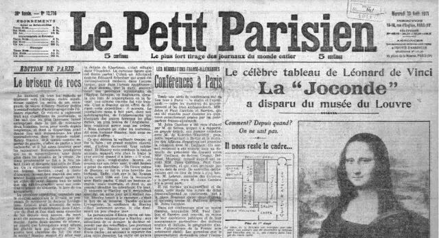 当时媒体就这一事件连续报道了三周,《巴黎人报》打出巨大的标题“佐贡达夫人逃离卢浮宫”(即蒙娜丽莎原型的名字),并配以讽刺性的话语“我们还有画框”,案件受关注程度甚至一度超过欧洲外交走廊躁动的战火和迫在眉睫的一战。警方的调查一度陷入错误的方向,甚至将毕加索和他的一位诗人朋友作为嫌犯送到地方法院审问。