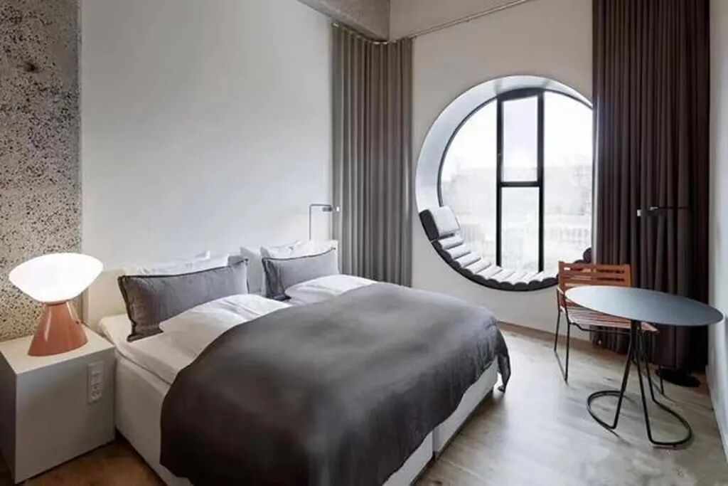设计师在大楼中间劈了一条玻璃切口,让阳光洒进屋内;同时,在大楼的另一侧挖了相同数量的圆形窗户。设计的初衷本是为了与镀金圆盘相呼应;可没想到如今这些窗户却成了酒店出镜率最高的打卡地,酒店内部则在工业风和北欧极简风之间随意切换。酒店还推出了专属音乐歌单,每周举办现场音乐会。