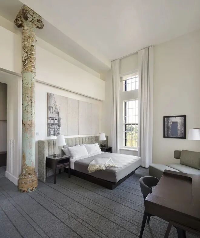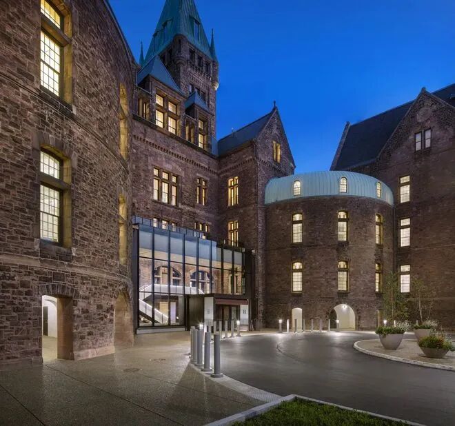 如果事先不说这是精神病院,人们恐怕一定会以为是某个公爵富商家的城堡呢。起先,这里被用作精神病医院,但随着心理健康治疗方法的转变,1974年后这栋大楼开始闲置。直到2017年,Deborah Berke Partners将它的中心区域改造为精品酒店,并命名为Hotel Henry,以此来向它最初的设计者Henry致敬。