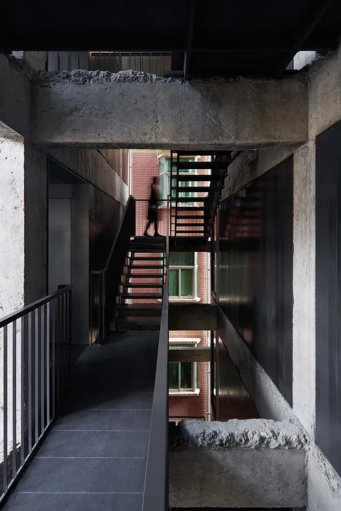 改造酒店的惊艳之处,不仅在于设计本身的视觉呈现上,很大程度上也在于改造前后所体现的反差感与融合度。如 THE POND,就将新旧共生的设计反差感与融合度推拉到了极致:崭新的功能与旧日情景交织,模糊的历史感暧昧虚实,拙朴与极致分别呼应着过去与现在,新旧冲突支撑出更加稳固的依存关系,如回音壁般发出微妙的、丰富质感的回响。