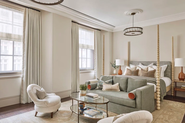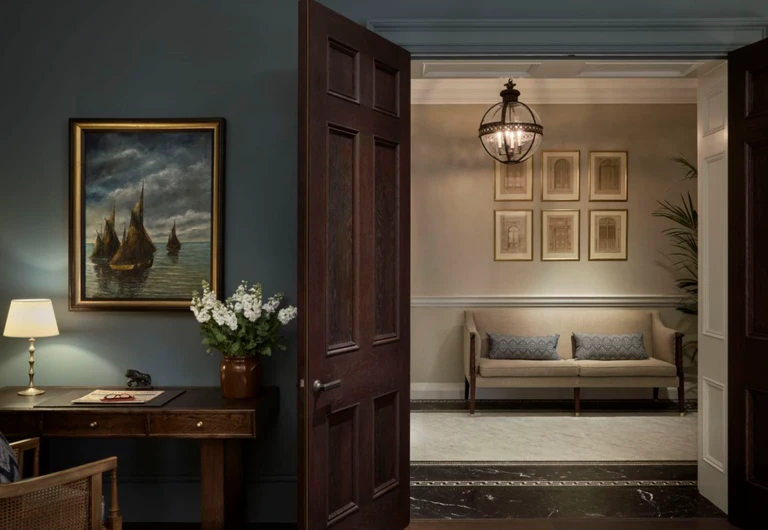 如今,这座被列为 Grade II* 的旧战争办公室已被改造为莱佛士的第一家伦敦酒店,拥有 120 间顶级客房和套房、85 间独特品牌公寓以及 11 间餐厅和酒吧等。建筑和设计团队保留了该建筑中的大部分原始结构,其中包括美观的结构比例和完美的细节。为了尽可能保存和恢复历史细节,自然资源保护主义者和考古学家甚至在建筑改造过程中,对建筑的每一处结构都进行了编目,这种规模的改造任务在历史上也是史无前例——数百名工匠,历时5年修复这些古老元素。酒店原定于2022年开业,目前延期至2023年春季开业。