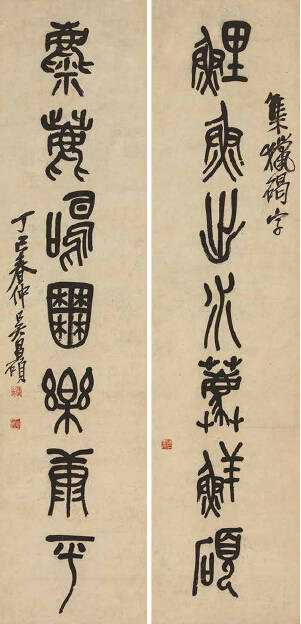 篆书“鲤鱼麋鹿”联