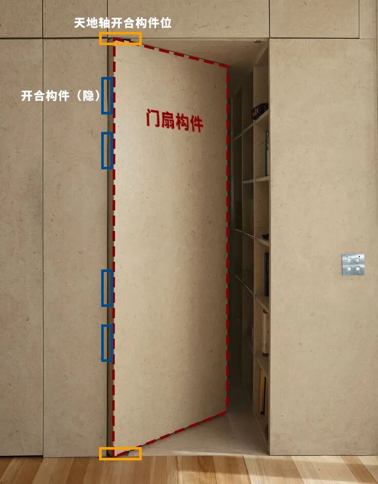 根据这个原理,我们在理解暗门时,其实可以把它拆分成“门扇+开合构件”来理解。