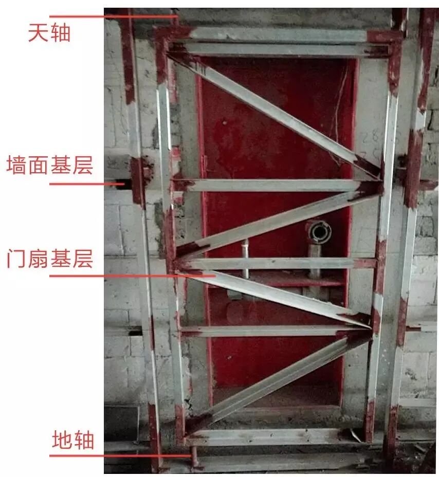 2、暗门钢架与门轴焊接安装:这一步就是先定位门轴,将暗门的钢骨架直接焊接在门轴上,实现门扇与墙体的开合。