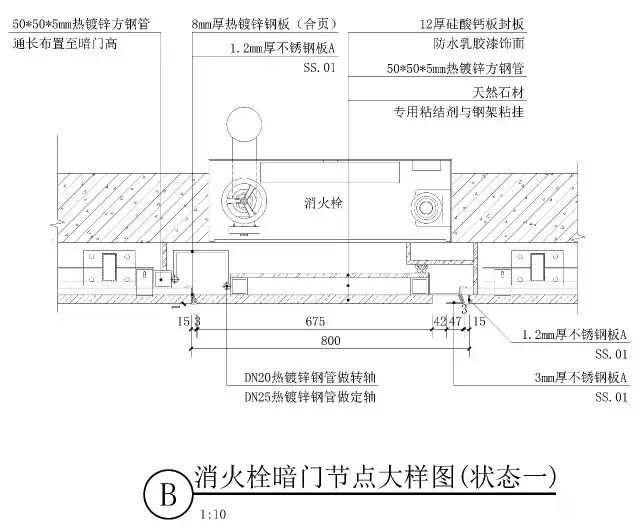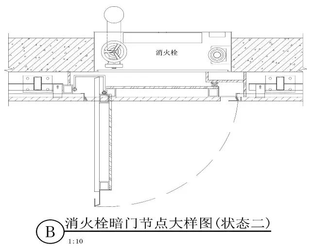 从图中可以看出,整个石材暗门的宽度只有800mm,开启角度就可以达到180度,完全满足了消防规范里的消火栓门的开启角度要求。