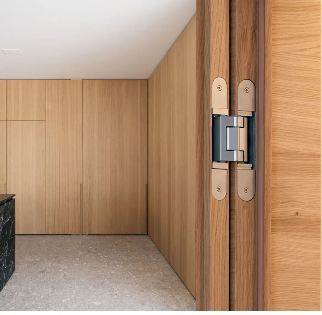 在解读暗门的底层规律之前,我们一定要了解门的“五金构件”,一般门的开启主要由一侧装合页或者两侧装天地轴来实现。