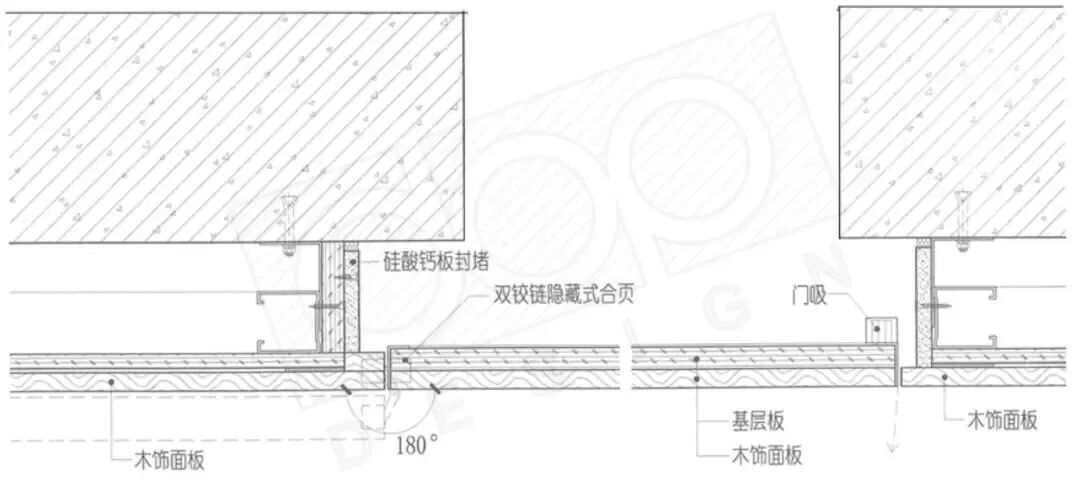A:很多设计师都在苦恼这个问题,自己画的暗门节点,后面明明有饰面板,但是现场却往往不会那么做。