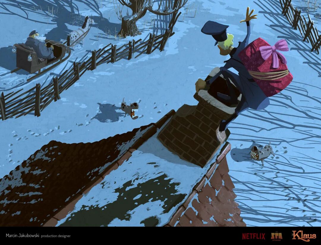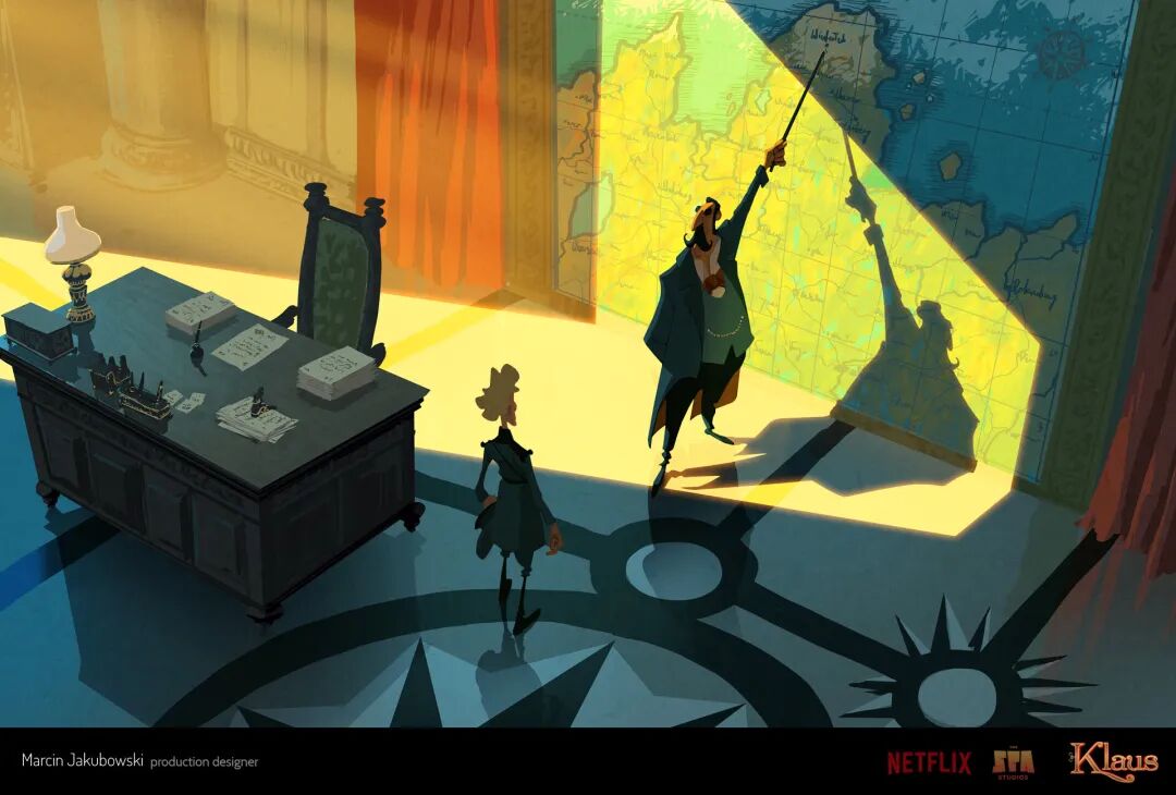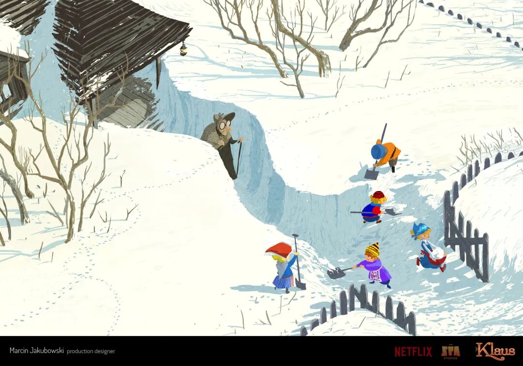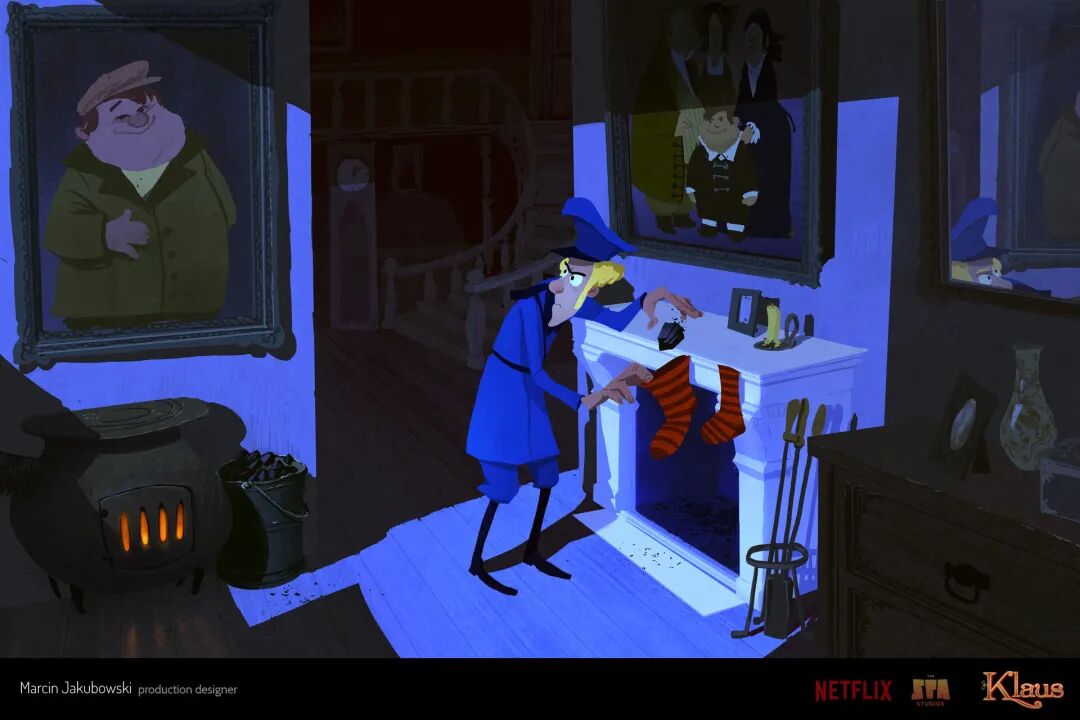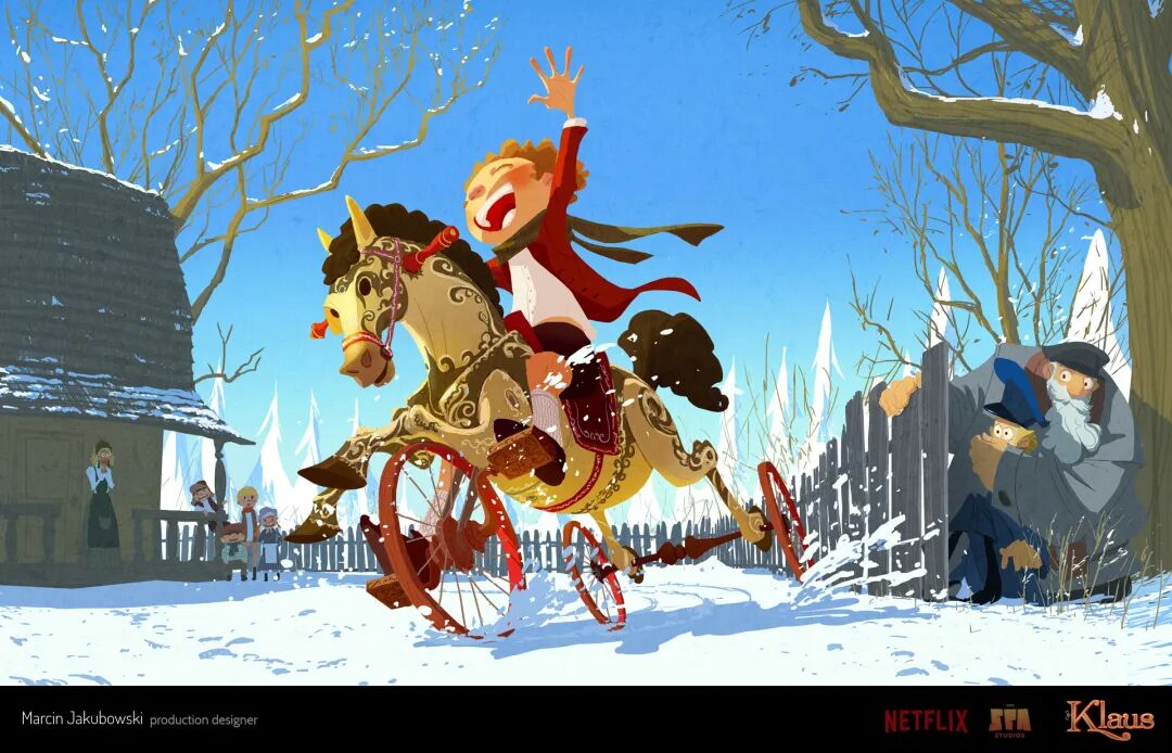 而在Marcin的职业生涯中,由Netflix出品、获得第92届奥斯卡最佳动画长片提名的电影《Klaus》占据了举足轻重的地位,这部影片开创性地创造了全新的2D角色照明系统,二维手绘创造出了三维的效果,“二渲三”使得角色立体感更强,与整体环境的融合更加自然。