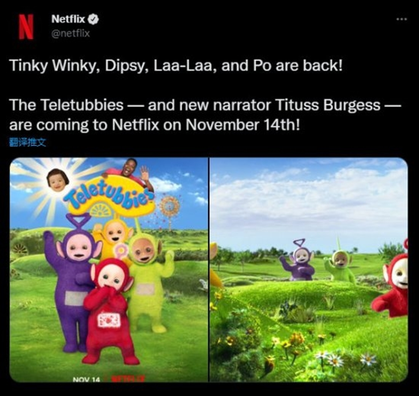 97Netflix宣布,将重启知名儿童节目《天线宝宝》系列,计划于1114日上线。