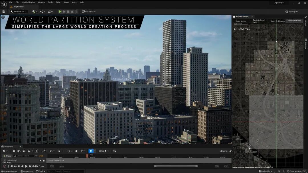 模型资源库丰富-World partition system:全新的世界分区系统对传统做出颠覆, 它会自动将世界划分位网格,通过选取进行局部调整*虚幻引擎ue5
