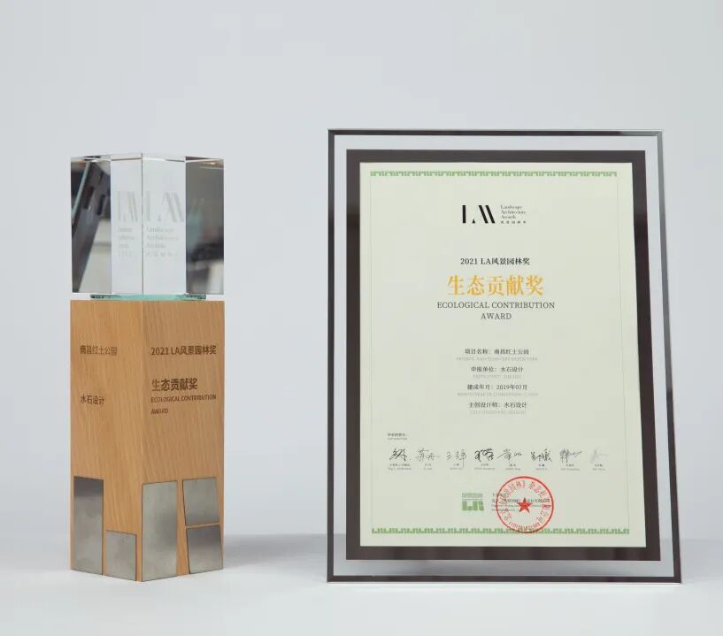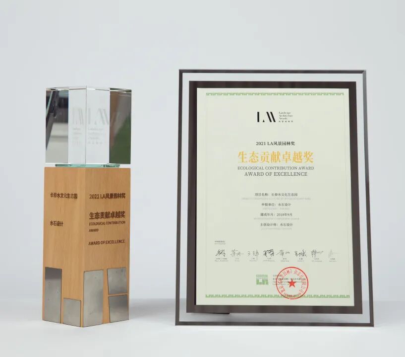 在2021 LA风景园林奖评选中,水石设计共斩获4项大奖:长春水文化生态园荣获生态贡献卓越奖,南昌红土公园荣获生态贡献奖,昆明乌龙古渔村荣获人文关怀奖,上海新华路口袋公园荣获社区贡献奖。