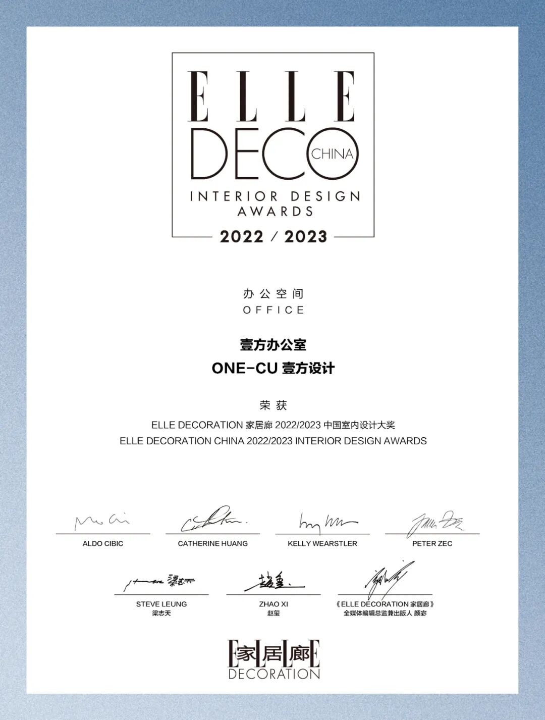 /NEWS | ONE-CU壹方办公室 荣获《ELLE DECORATION家居廊 2022/2023》中国室内设计大奖