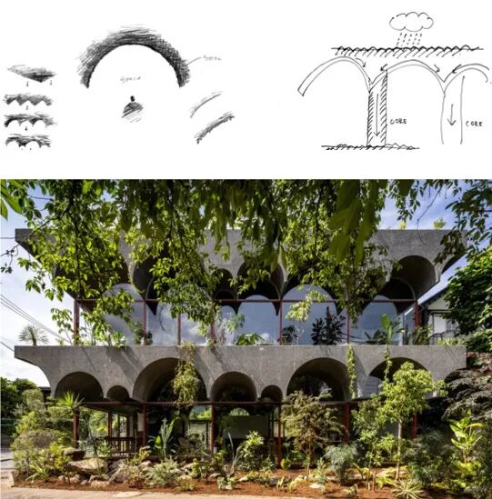 建筑表皮、空间与环境共生,产生与环境发生能量交换的界面和空间形态,形成具有开放性的“建筑-自然”系统。