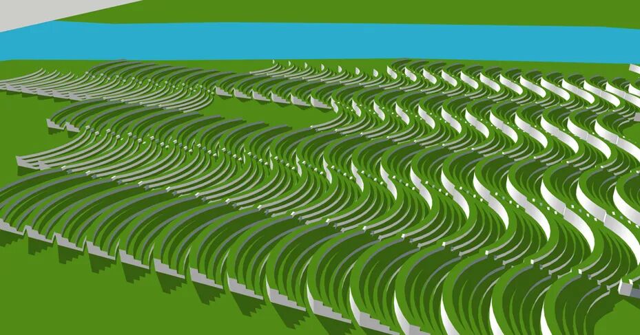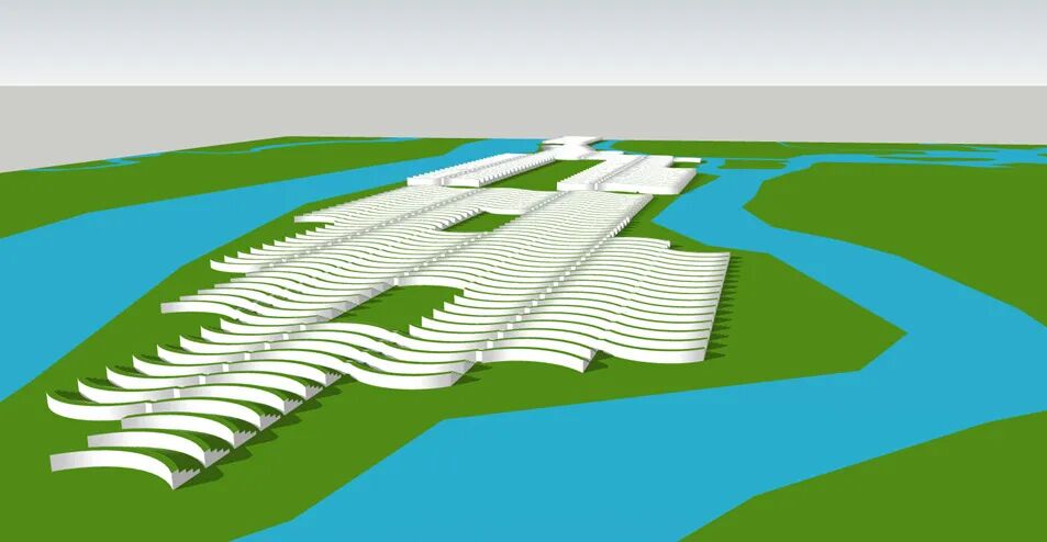 把建设统一的高层住宅,改为先建设间隔9米左右的等高线结构层“大地”,业主再在结构层上选购属于自己的独立别墅。