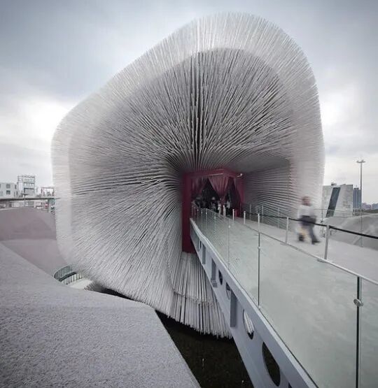 非线性态:不仅指建筑形态的非线性,也指设计师思维非线性的状态。建筑的非线性态是建筑表皮、空间展现出的曲线的、有机的形态,与现代建筑的直线的、机械的状态形成鲜明对比。