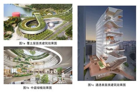 覆土屋面(图1a)是将自然土壤覆于建筑屋面,将建筑顶面与大地结合,使得建筑如同从大地中钻出。中庭绿植(图1b)体现建筑室内空间与自然的融洽,打破了建筑与自然的边界,提升室内的物理环境质量。通透表面(1c)指建筑表皮的通透性,是建筑内部与环境形成信息交换的视觉体现。