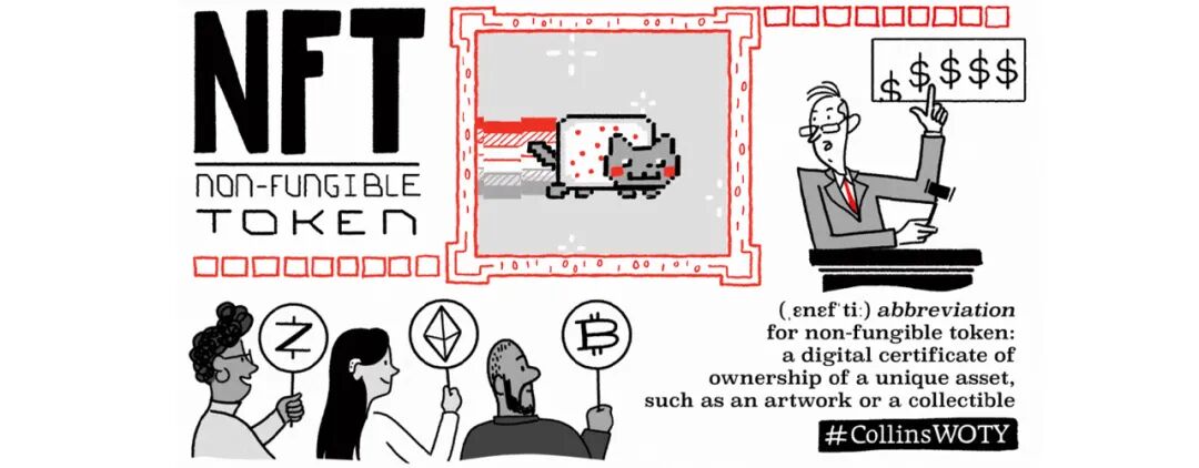 每年,柯林斯都喜欢给一个特定的词授予年度词奖,而今年“NFT”这个词是大冠军。字典公司博客文章解释到:“'NFT','non-fungible token' 的缩写,一种唯一的数字标识符,用于记录数字资产的所有权,该数字资产已进入主流,并在最抢手的图像和视频上花费了数百万美元,这是柯林斯年度十个单词中的三个基于技术的单词之一。”