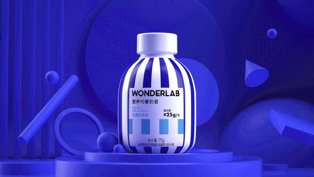 Wonderlab 作为代餐奶昔的头部品牌,以 “科学有料新营养” 为定位,自 2.0 包装 “小蓝瓶” 上市后,以超高的视觉表现力和过硬的产品受到消费者青睐。2021 年,Wonderlab 品牌再次升级,探索代餐 4.0 时代。此次包装设计升级项目由 “东西制造局” 担任设计,赋予品牌视觉具魔法几何效果的 “欧普艺术” 概念,结合理性科学与感性想象,通过变化的几何形状跳脱时尚化的束缚,将品牌包装呈现出艺术化的形象。