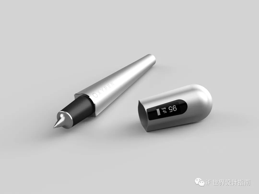 脉搏血氧仪通常具有特定的用途,较为笨重,符合医学审美。经常监测血氧浓度对治疗和管理一系列疾病至关重要,并且十分有益。“Oxypen” 是一种结合了钢笔功能的脉搏血氧仪,方便携带和经常监测血氧饱和度。自然仿生的流线形外观与其他类似设备形成鲜明对比。捏住笔帽即可轻松打开。用户将手指插入,笔夹屏幕上就会显示读数。