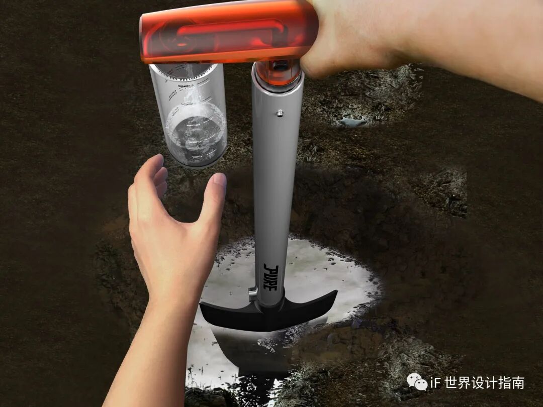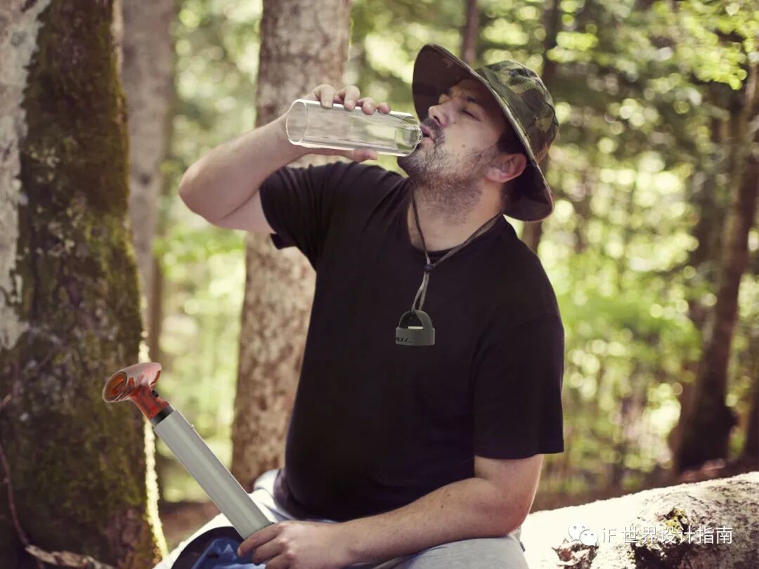 Draw 是一款带铁锹的滤水器。它专为在偏远地区徒步旅行或露营、不方便获取清洁饮水的人设计。在普通的户外活动中,可以把它当做一把铁锹来帮助扎营,但当探险者急需饮用水时,可以用它寻找并过滤地下水。通过其独特的结构,使用者只需抽吸和按压就可以得到一瓶干净的水。