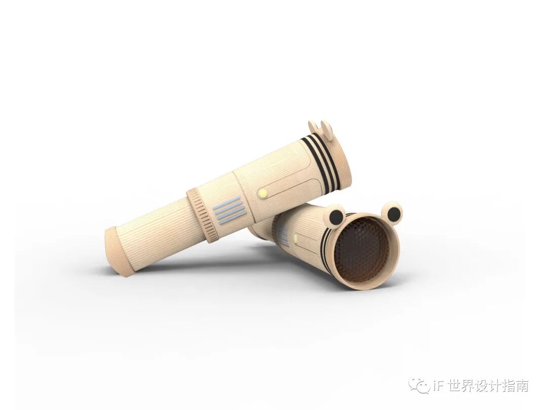 该玩具设计的创新之处在于将万花筒与瓦楞材料和动物图案结合起来,鼓励儿童透过动物的眼睛看世界,从而学会珍惜和保护它们。这也是一种绿色设计 —— 材料是回收瓦楞纸,胶水由植物淀粉制成,安全、牢固、无毒。