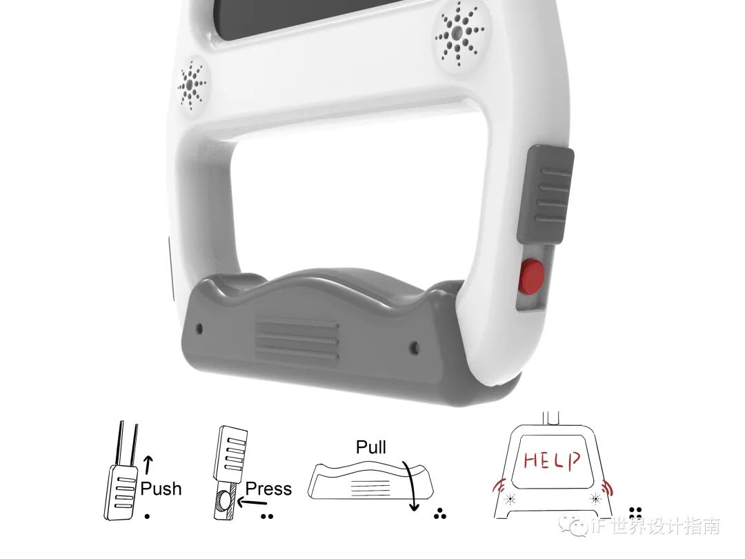 反骚扰手柄解决了公共交通中的性骚扰问题,女性能够快速、方便地发出警告或求救信号。当在拥挤的公交车上受到骚扰时,女性乘客可以通过按下手柄上的按钮并同时拉下手柄来启动报警装置。一旦启动,手柄会发出警报声,集成屏幕会显示求救信号,以吸引其他乘客的注意。