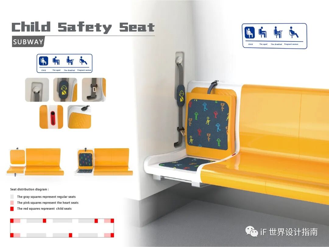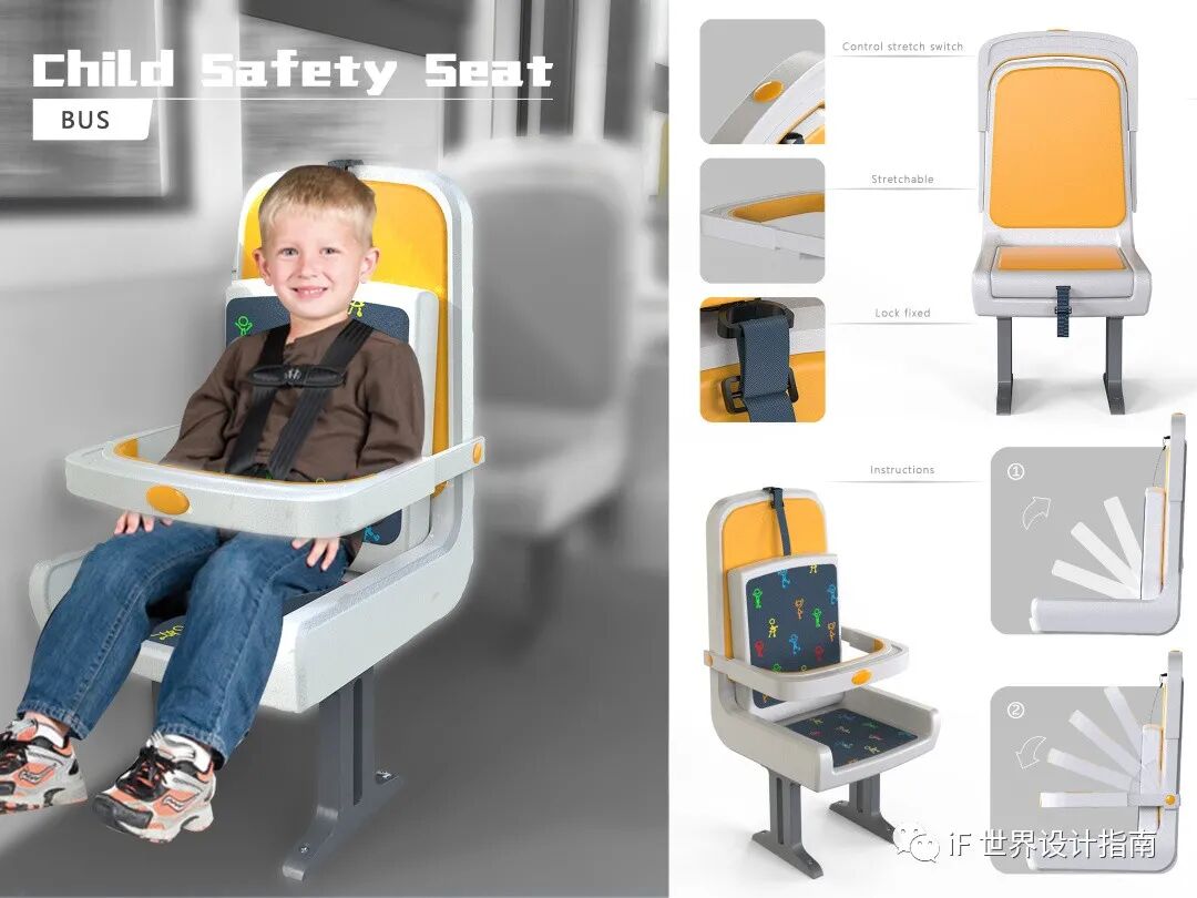 一项调查发现,4 至 12 岁的儿童在使用公共交通座椅时存在重大安全隐患。最大的问题是座椅大小不合适;它们对孩子来说太大了,存在滑倒或跌落的严重风险,特别是在紧急情况下。为了解决这个问题,设计师仿照现有的公共汽车和地铁座椅创造出一种创新设计,操作简单,儿童可以独立上下,保证了儿童在公共交通工具上的舒适和安全。