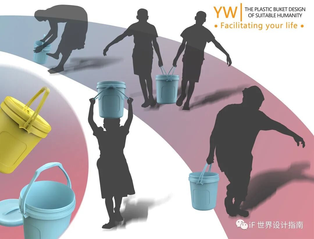 这种双柄水桶旨在减轻非洲人民需要从水井和河流中取水的负担。它使搬运者更易掌握头上放置的水桶平衡,或两人能一起抬水桶。45 度的耳柄设计使水桶更易抬起,也更易放下而不洒落,同时还能防止夹手。水桶底部呈圆形、凹型,使得水桶更易控制和平衡。