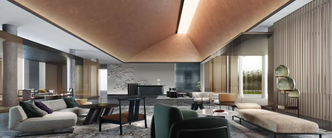 酒店厅堂之内则结合了悠然江南雅韵,诗意、素然。午后再来大堂酒廊小酌一杯吧~这里以自然空间的材质为基底,淡雅自然,将空灵、丰富的空间与自然之美巧妙相融。透过开合的门扇,阳光的清透的水景交相映荣。