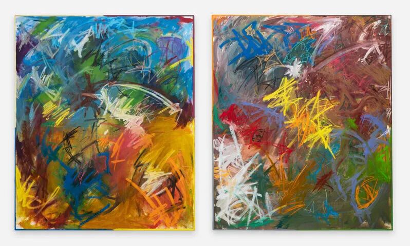 Oil, oil pastel, oil stick, chalk stick Diptych