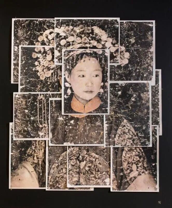 Old photography with mixed technique and collage. Watercolor paper on canvas