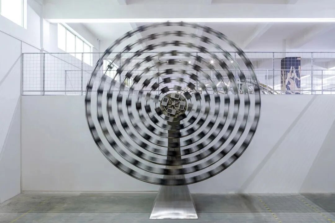 艺术家刘展将180部半导体收音机组成了一个不停旋转的巨大的轮盘,每部收音机锁定一个短波波段释放着来自远方的声音。