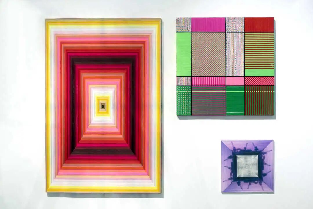 编织的创作过程是对自由和规矩的一种抗争,也是感性和理性的博弈。当创作者选择了一定织带的宽度和颜色,就限制了画面的元素,在限定的条件下进行有规律的重复,或者完全无意识的随机组合。