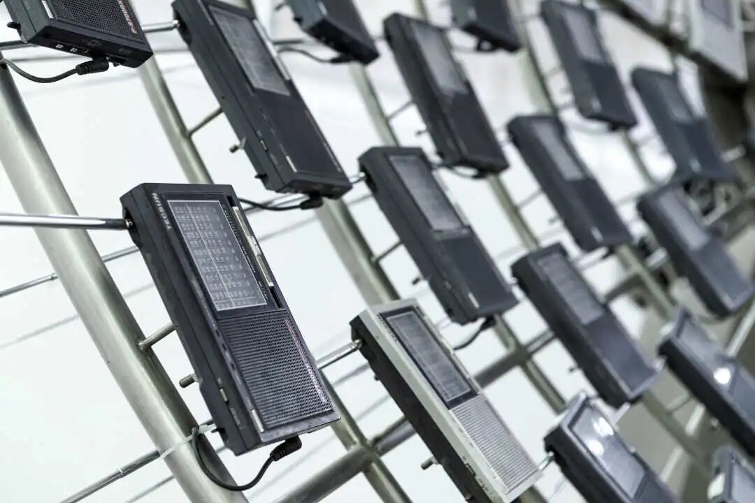 关于使用收音机短波频率接收信息的历史,在这个时代已逐渐被淡忘。空间中回荡着收音机发出的来自不同地区的声音,让观众在持续变化且识别度很低的声音中,想象远方的世界。