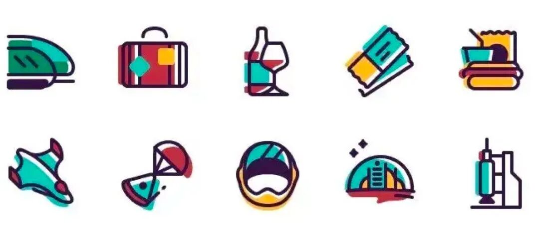 带颜色形状的图标适合于产品比较年轻化,用户人群年轻人,比较追求个性的产品调性,会让页面充满灵动力。