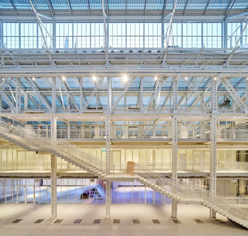保留原始的通风工业美学,在各个方面进行现代化改造,打造一个可容纳所有艺术形式的场所。并为了整体空间的采光,将原发电厂的屋顶用玻璃代替,营造出一种光之教堂的感觉。