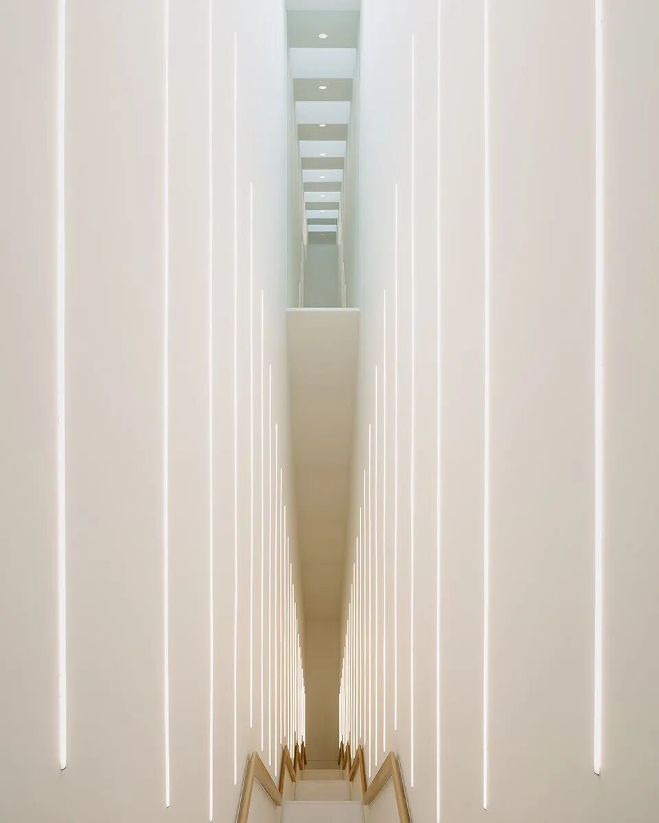 内部空间的每一处装饰表面都经过精心清理、打磨,才能复原成现在这样的精致优雅,顶部的穹顶原本覆盖着壁画,现在被完全敞开,变成透光的天井。