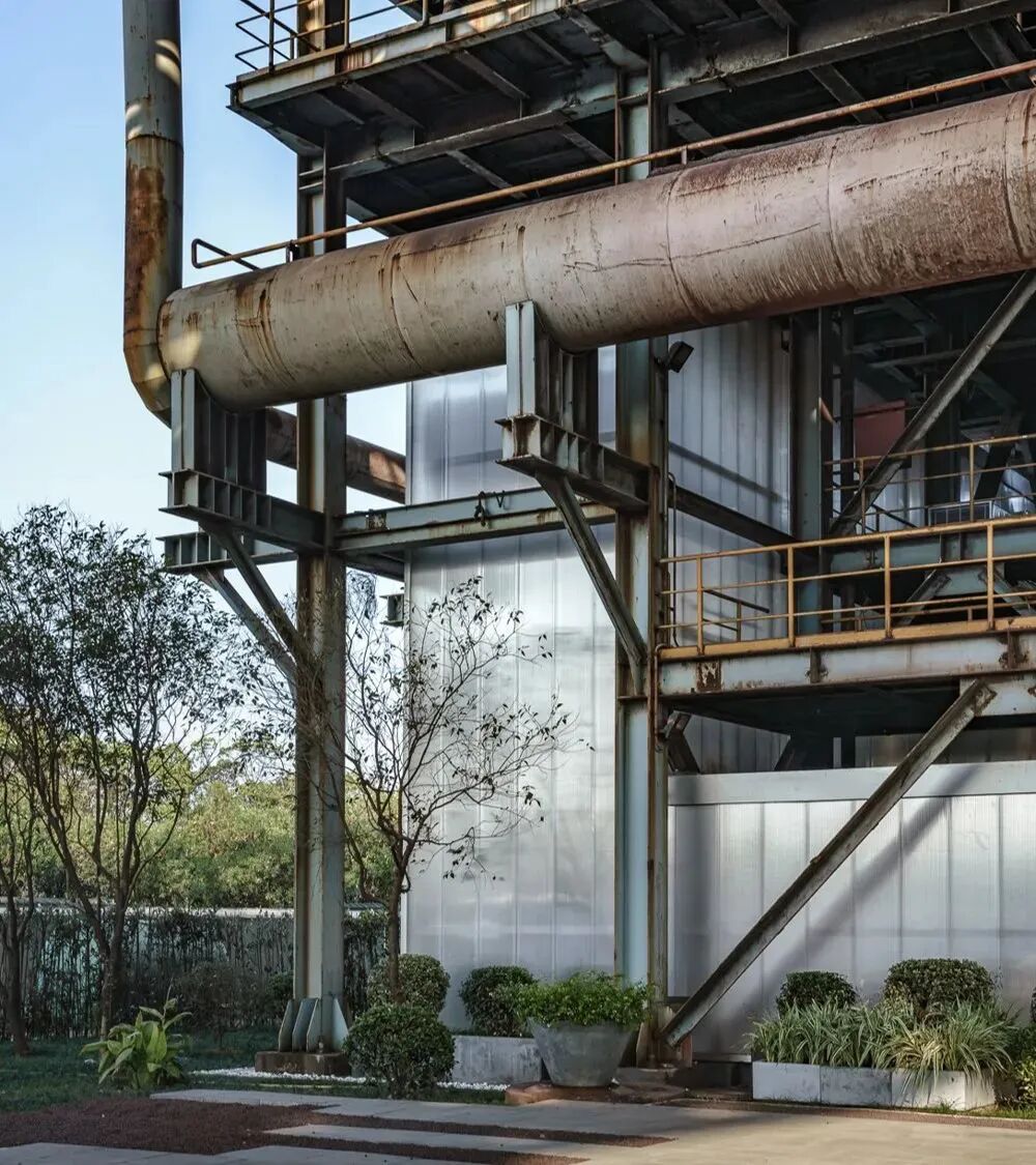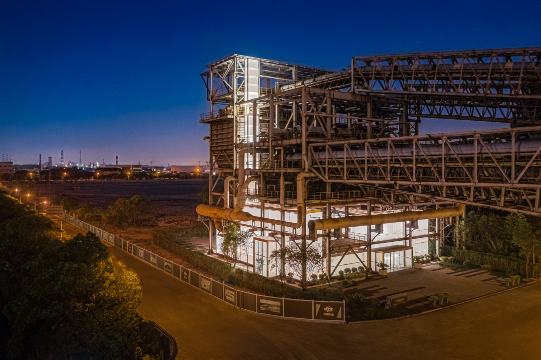 在上海宝山区,遗留着一座宝武上海罗泾基地的工业遗产,经过 Kokaistudios 灵活而大胆的改造设计,原本不具功能性的破旧结构转变为极具工业风格的展览中心——宝山再生能源利用中心概念展示馆。