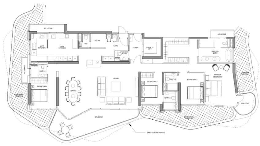 这是个多功能混合型住宅项目,共有 11 层,包含近 3,716㎡ 的零售空间和 233 套公寓。