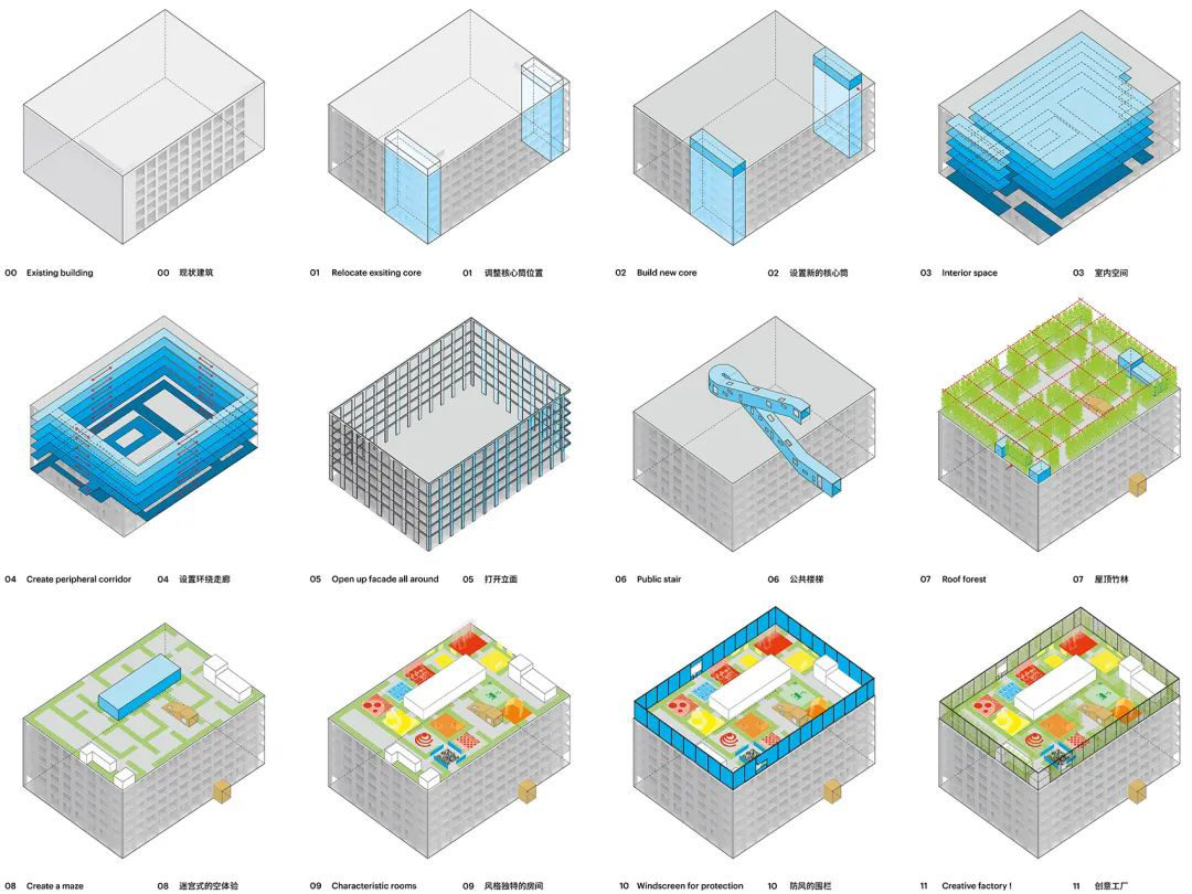 由MVRDV设计改造的“if工厂”前身是深圳南头城中村内的一座服装工厂。相较于拆除和重建,MVRDV从可持续的角度对原有建筑进行改造再利用,将其升级为一座“创意工厂”,用于万科城市研究院的办公空间和其他创意办公租赁。