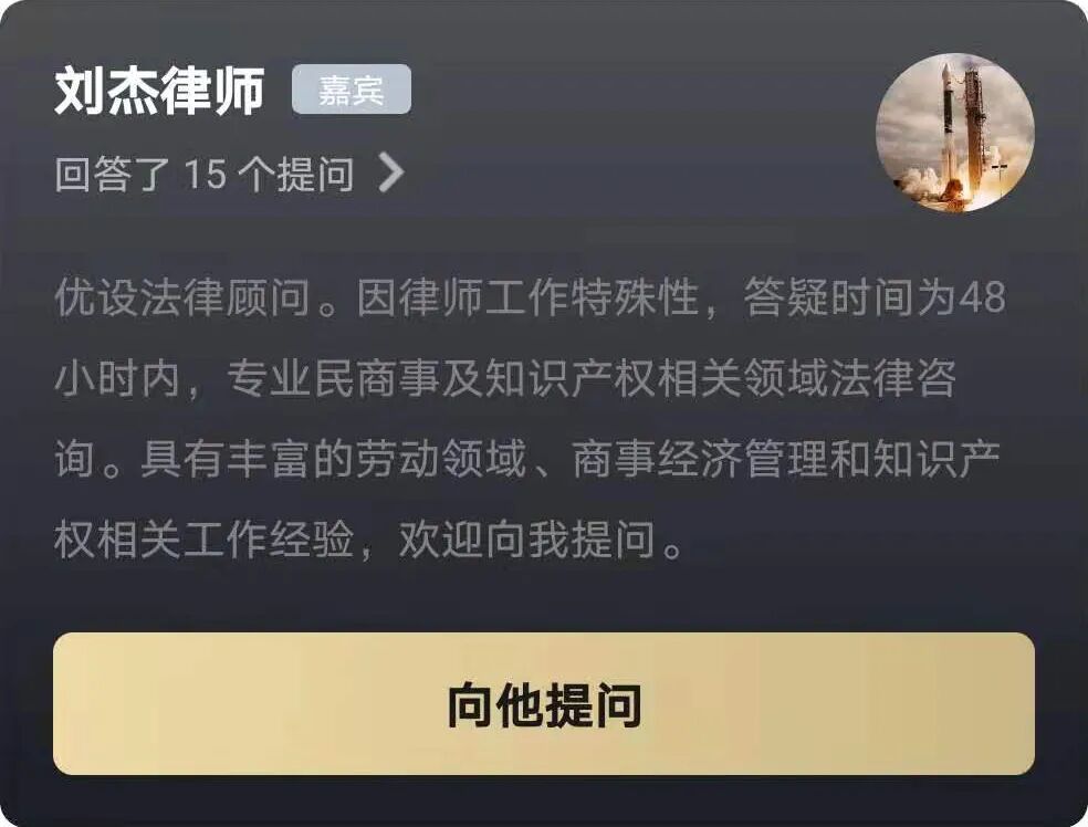 动辄几百元的律师咨询,在星球里全部免费!!! 只要加入星球,以后优设的律师就是你强大的法律援助后盾。