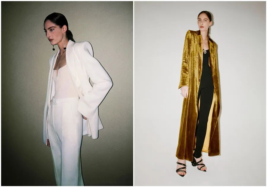 Galvan2022早秋系列值得关注的服装流行趋势元素:修身剪裁、亮片元素、丝绒元素、镂空细节……