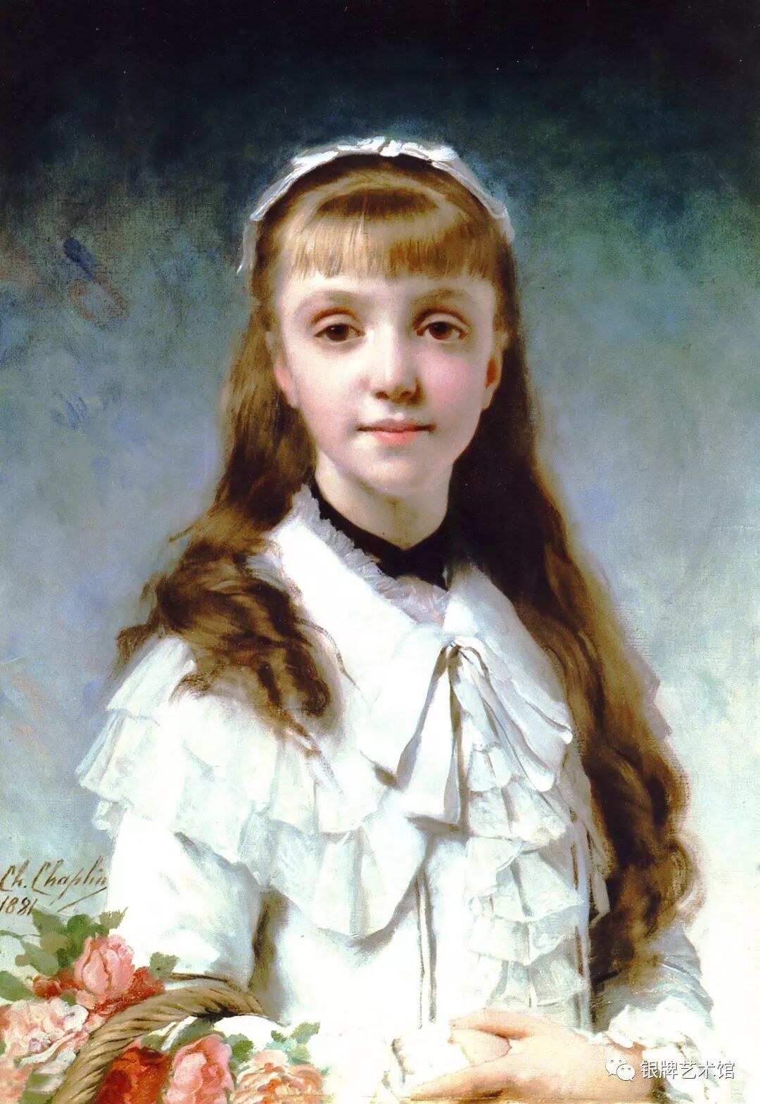 大家好!今天给大家介绍法国画家卓别林创作于1881年的油画作品《年轻的女孩与花束》。